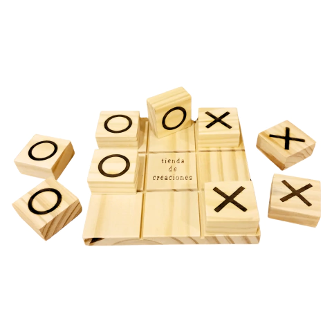 ¡Prepárate para la diversión con nuestro Juego de TaTeTi Didáctico! Este clásico juego de estrategia viene con 9 fichas de 4,5 x 4,5 cm, ¡perfectas para duelos de inteligencia! Cada ficha está sellada a fuego en madera natural, asegurando durabilidad y un toque rústico.